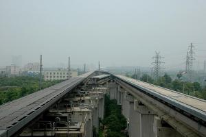 上海磁悬浮列车是世界上第一条投入商业化运营的磁悬浮列车线,具有交通、展示、旅游观光等多重功能。西起上海地铁二号线龙阳路站,东到浦东国际机场,线路全长约30公里,双线上下折返运行,设计最高运行速度为每小时430公里,单线运行约8分钟。一个供电区内只能允许一辆列车运行,轨道两侧25米处有隔离网,上下两侧也有防