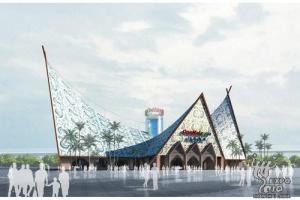 占地面积3000平方米的马来西亚馆,将采用可循环利用的油棕、塑胶等材料建筑而成,重点展现马来西亚的独特风情和团结的民族精神。展馆的设计灵感源自马来西亚传统建筑。整个建筑由两个高高翘起的坡屋顶组成,线条优美而极具动感,屋顶尖端的交叉构架是马来西亚本土建筑的一个符号。